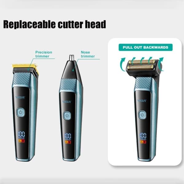طقم حلاقة احترافي 3 في 1، مزود بشاشة عرض ال اي دي، وقت تشغيل 90 دقيقة، شحن USB نوع C