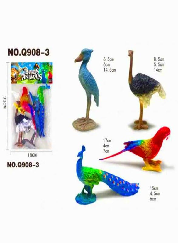 - مجموعة كاملة: تتضمن العبوة 4 تماثيل مفصلة للطيور - الطاووس والببغاء والنعام ومالك الحزين الأزرق، مثالية للتجميع أو العرض