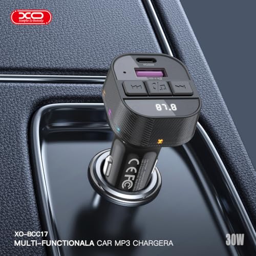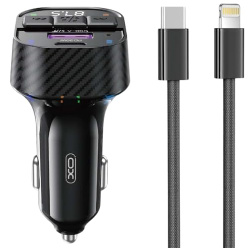 شاحن سيارة BCC17 سريع 30 وات، كابل لايتنينج مضفر باتصال بلوتوث 5.3، جهاز إرسال راديو اف ام بتنسيق ام بي 3/WAV مع منفذ USB مزدوج مع حماية من الجهد الزائد والحرارة والدوائر الكهربائية القصيرة من اكس او