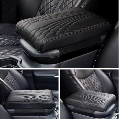 غطاء وحدة التحكم المركزية للسيارة، غطاء لمسند ذراع السيارة من الميموري فوم بلون أسود، وسادة كوع منظمة، غطاء مسند ذراع جلدي للسيارة من ميك اوفر، أسود (مقاس مخصص)