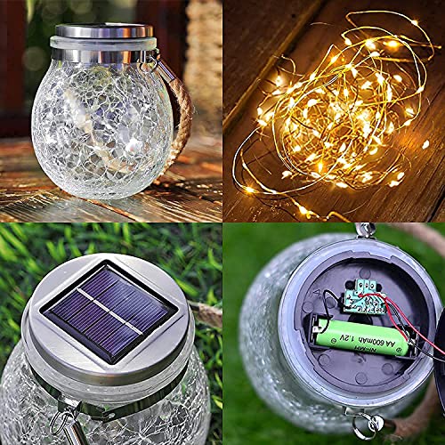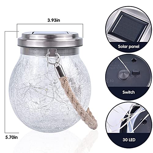 - 【مصابيح شمسية معلقة - تشغيل/إيقاف تلقائي】سيتم شحن الفوانيس الشمسية المعلقة تلقائيًا خلال النهار وتضيء في الليل. تصميم زجاجي جذاب للأنظار، حوالي 5.70 انش × 3.73 انش، متوافق مع 30 مصباح LED.