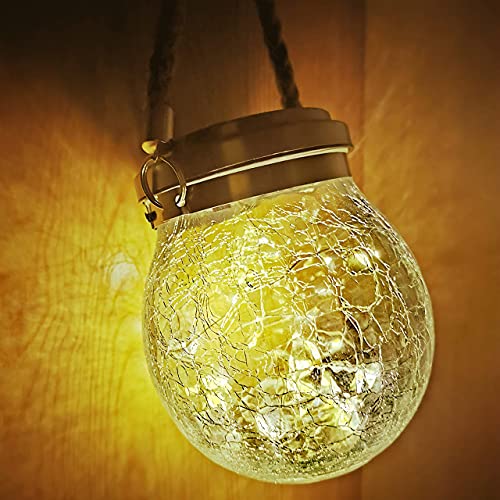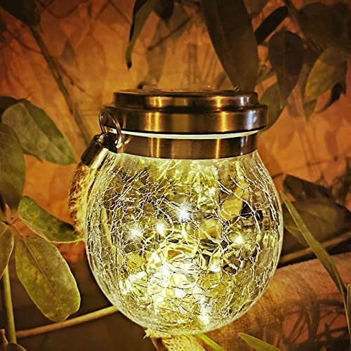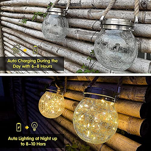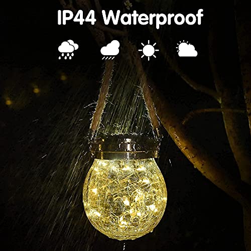 مصابيح شمسية معلقة في الهواء الطلق - عبوة من قطعتين، مصابيح شمسية لتزيين الحديقة، مصابيح شمسية للفناء، مصابيح شمسية اي دي كرة زجاجية، فوانيس شمسية مقاومة للماء لممر الفناء