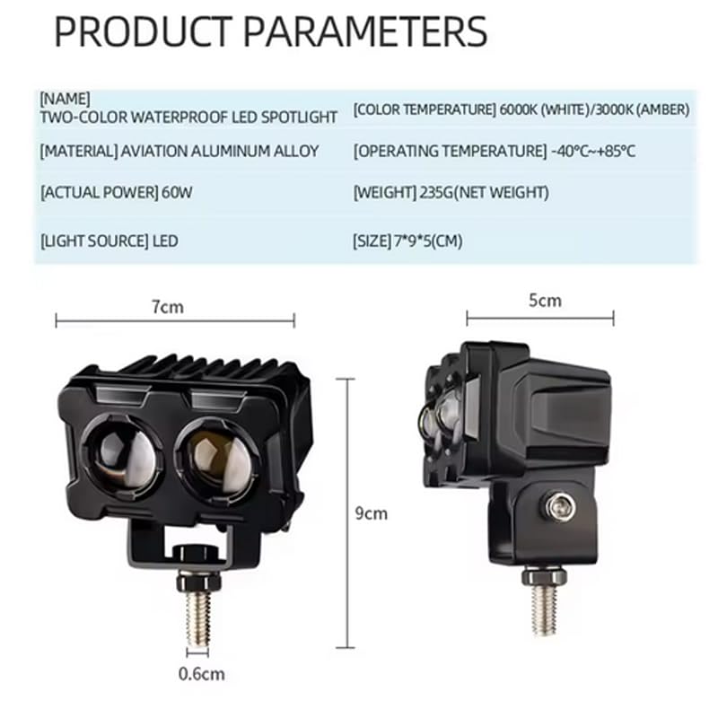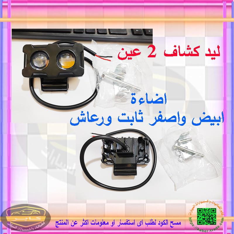- كشاف فانوس شبورة ليد تصميم بومه لون اسود 2 عدسة ،اضاءة عالية السطوع ابيض واصفر ثابت ورعاش ، سلك طرفين، مناسب للسيارات والدراجات والموتوسيكلات والاسكوتر والشاحنات وسيارات الطرق الوعرة والسيارات الجبلية