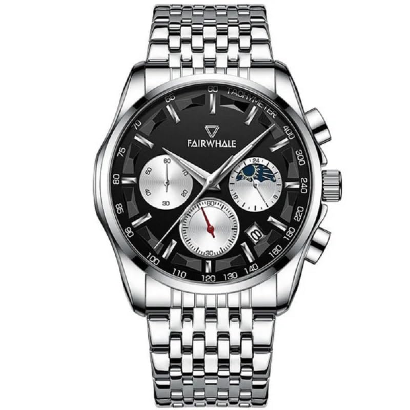 ساعة ستانلس ستيل للرجال من فيرويل FW-5360-1، مقاس 40 ملم، فضي/اسود، تناظري