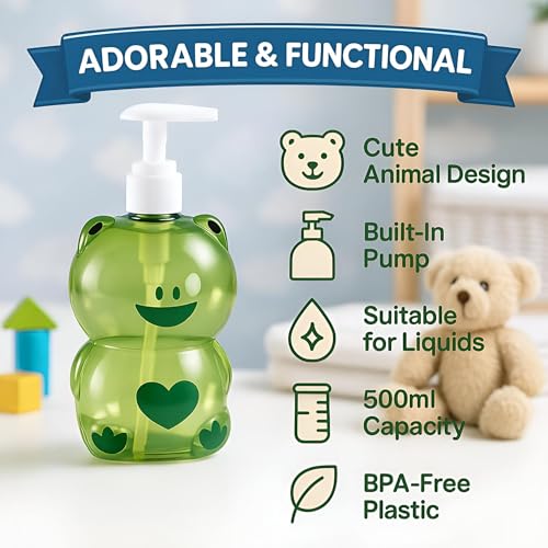 مضخة فوم - موزع صابون بتصميم حيوانات لطيفة لحمام الاطفال، حامل قابل لاعادة الملء سهل اللمس، ملحق حمام مرح يساعد الاطفال على بناء عادات صحية صحية، حاوية متعددة الالوان (قطعة 1)