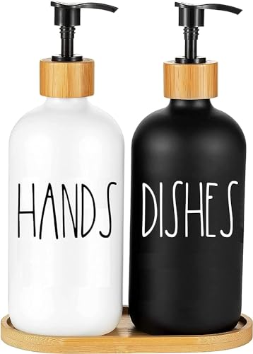 - هدية مثالية - يمكن أن تكون مجموعة موزع الصابون اليدوي هدية رائعة لأصدقائك وعائلتك وأقاربك. مجموعة موزع صابون المطبخ مع صينية مناسبة تمامًا لأسطح طاولة التقديم.
