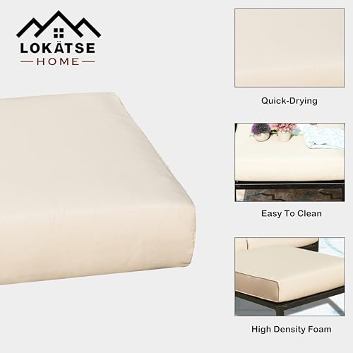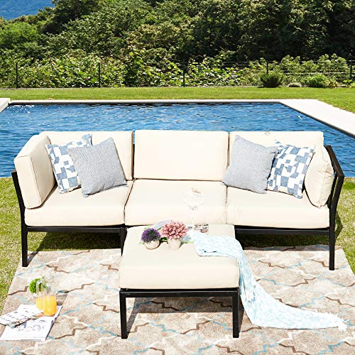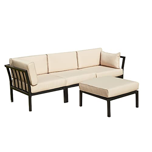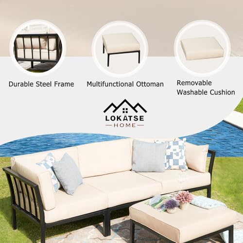 طقم أثاث مقسم للفناء الخارجي مع 2 مخدة ناعمة وسميكة، كنبة بدون ذراع و1 مسند قدم عثماني للفناء الخلفي والحديقة والحديقة، كاكي من 4 قطع من لوكاتسي هوم