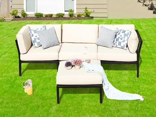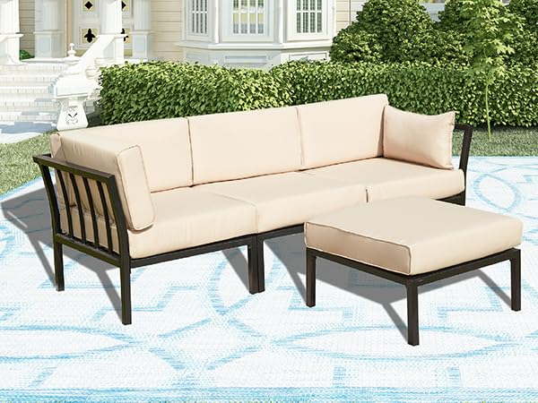 - مجموعات أثاث الفناء من 4 قطع: تتضمن مجموعة الأثاث المقسم للأماكن الخارجية 2 كنبة زاوية و1 كنبة بدون ذراع و1 مسند عثماني. يمكنك الجلوس عليها مع عائلتك وأصدقائك للاستمتاع بشاي بعد الظهر اللذيذ أو الاستمتاع بمناظر رائعة في الهواء الطلق، مما يجعل وقت فراغك أكثر روعة.