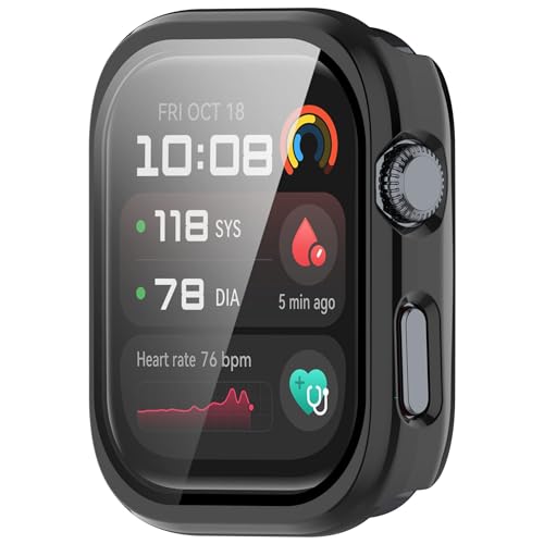 جراب حماية صلب من البولي كربونات + شاشة حماية من الزجاج المقوى ضد الغبار لساعة هواوي D2 من فاشون مانيا (لون أسود)