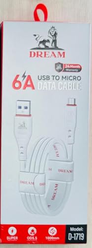 Dream كابل USB إلى Micro USB، 6A شحن سريع، طول 1000 مم، موديل D-1719، أبيض، ضمان 24 شهر