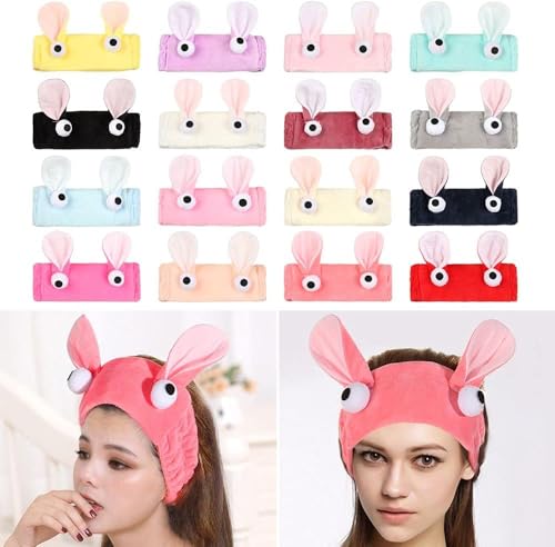شريط راس فائق النعومة بتصميم عيون لطيفة واذني ارانب، اكسسوار شعر لطيف للاطفال والبنات والنساء، مثالي للارتداء اليومي (متعدد الالوان- قطعة واحدة).