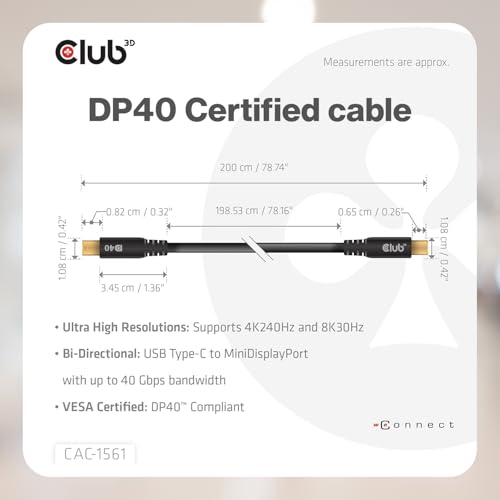 - ملاحظات مهمة قبل الشراء: يدعم هذا الكابل إشارات الفيديو فقط ولا يدعم نقل إشارة الطاقة والبيانات. لا ينصح بهذا الكابل لأجهزة الواقع الافتراضي. لا يعمل هذا الكابل تحت ثاندربولت 2، ولا يعمل هذا الكابل على تشغيل الشاشات والشاشات من موصل USB من النوع C. يجب أن تكون الشاشات المتصلة ذاتية التشغيل.