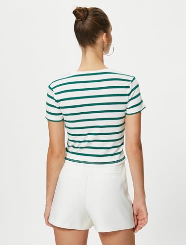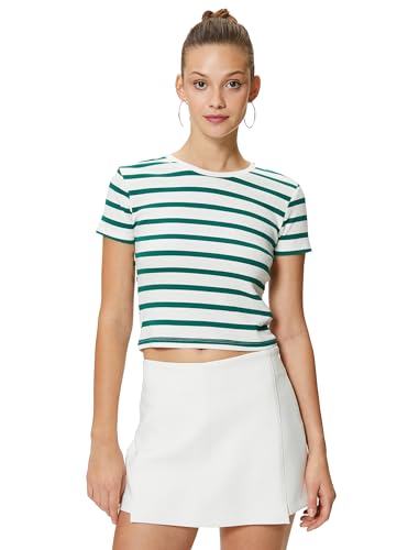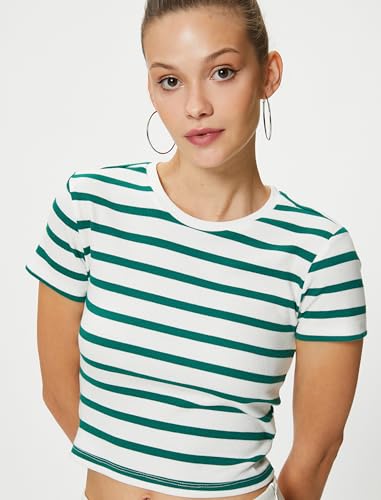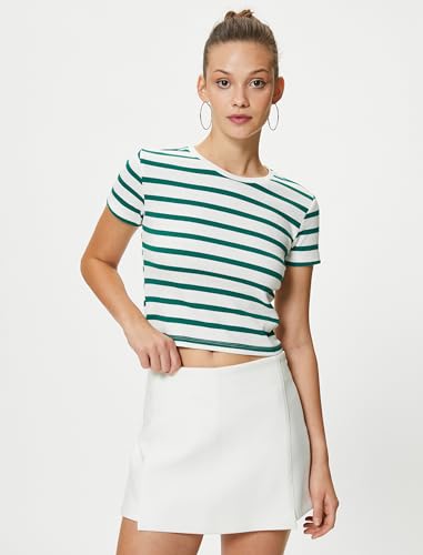 KOTON womens Crop Short Sleeve Crew Neck Viscose Fabric Blend Tshirt