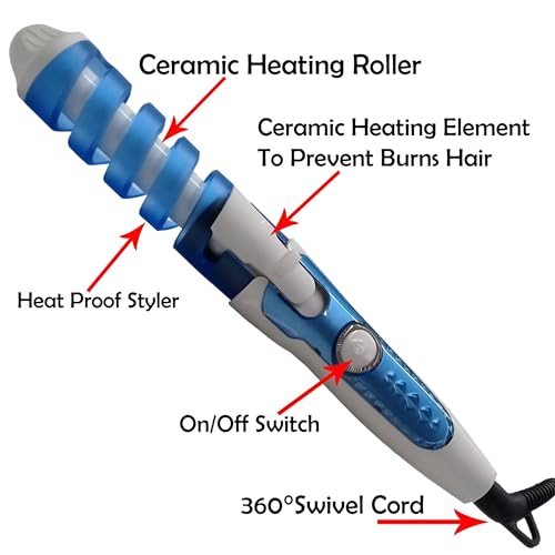 - تم تجهيز مكواة التجعيد بشرائط سيليكون مقاومة للحرارة على كلا الجانبين وهي متينة للاستخدام. مع الطرف البارد في الأمام، فإن الأمان وتجعيد الشعر بشكل أسرع وزيادة اللمعان أمر واضح لك. مكواة التجعيد الأوتوماتيكية مضمونة، وتوفر الوقت، دون التعقيدات والمتاعب المرتبطة باستخدام عصي التجعيد والمكواة التقليدية.