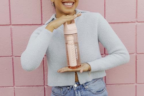 زجاجة مياه بفاتر من سلسلة جو خالية من مادة بيسفينول أ للسفر والاستخدام اليومي تزيل البكتيريا والطفيليات وجزيئات البلاستيك الدقيقة وتحسن الطعم من لايف سترو، لون كرزي بلوسوم بينك، سعة 650 مل