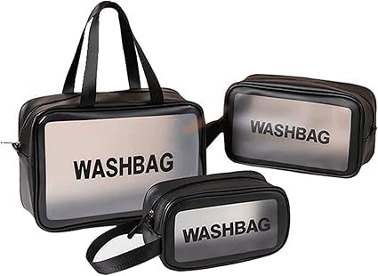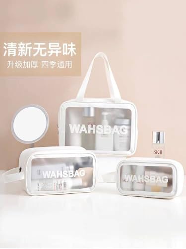 حقائب مستحضرات التجميل 3 قطع محمولة من بلاستيك PVC للنساء والرجال، حقائب مكياج شفافة لتنظيم مستحضرات التجميل مع مقبض بسحاب، حقيبة تخزين كبيرة شفافة للسفر H