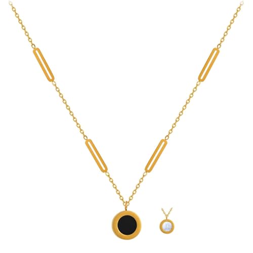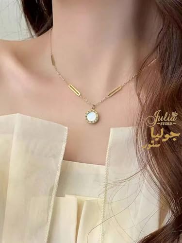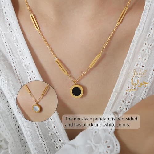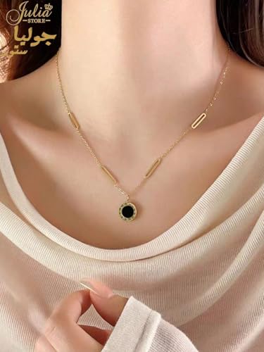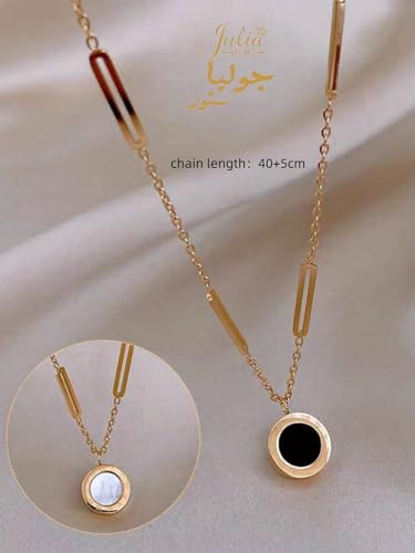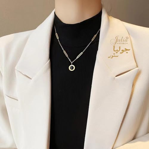 عقد بقلادة دائرية مزدوجة الجوانب من الستانلس ستيل مطلي بالذهب عيار 18 قيراط بمشبك ورقي كبير مع ارقام رومانية للنساء جوليا ستور