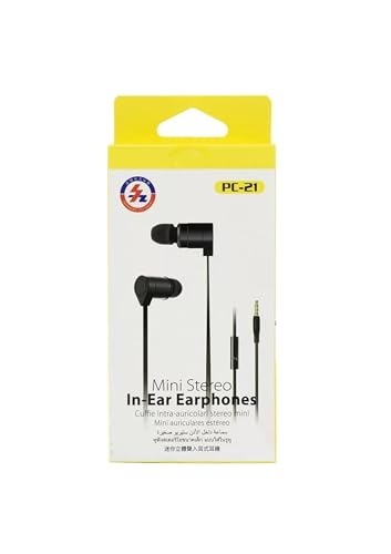 - او-اي PC-21 AUX 3.5 ملم سماعات اذن سلكية مع ميكروفون، سماعات اذن ستيريو للالعاب الرياضية بلون اسود متوافقة مع الهواتف المحمولة