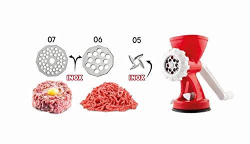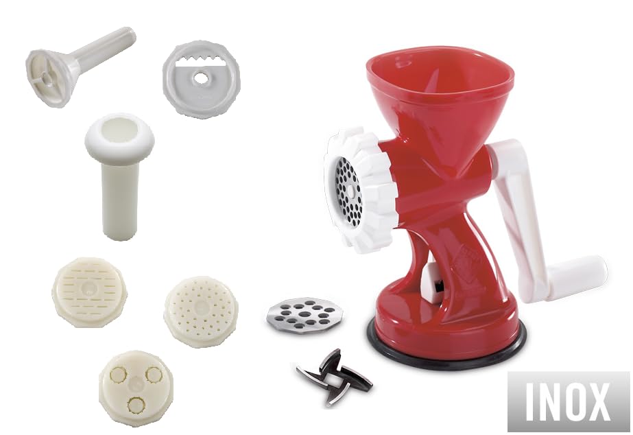 مفرمة لحم وسجق وصانعة بسكويت ومكرونة من ريجامونتي، صنعت في إيطاليا (أحمر)
