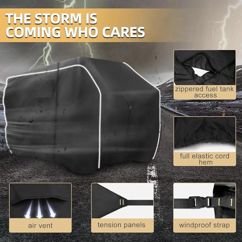 غطاء للموتوسيكل رباعي العجلات 600D، مقاوم للماء والرياح، أغطية وإكسسوارات شديدة التحمل للتخزين الخارجي للبيتش باجي، مقاس 1.9 متر طول × 1.19 عرض × 94 سم ارتفاع، أسود من زينيتشام
