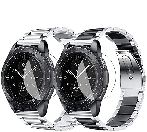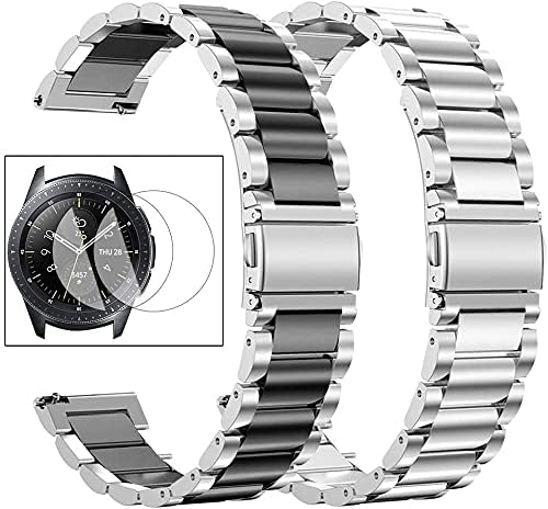 طقمان من سوار معدني ستانلس ستيل مع 2 شاشة حماية مقاس 45 مل لساعة سامسونج جالكسي 3 من S، للجنسين