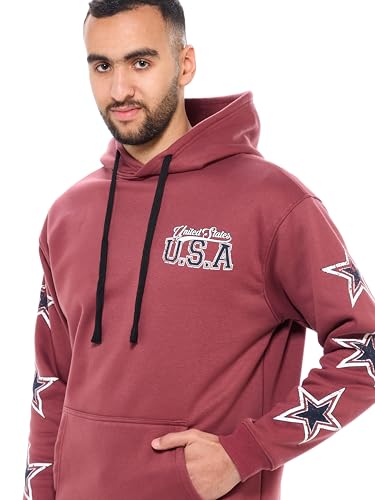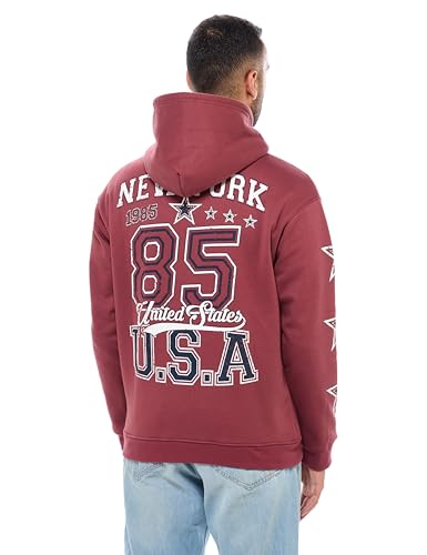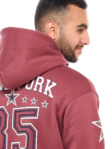 ريفين سويت شيرت شتوي بغطاء للرأس للرجال بقصة عادية وطباعة امامية وخلفية - لون بني فاتح