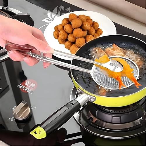- يتميز فلتر الزيت 2 في 1 بنظام ترشيح شبكي وملقط للطعام، مما يجعله متعدد الاستخدامات لاحتياجات الطهي والشوي المختلفة، مما يسمح لك بتصفية الزيت الزائد أثناء التعامل مع الطعام بسهولة.