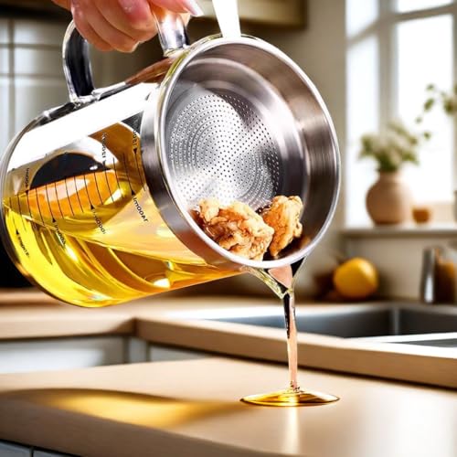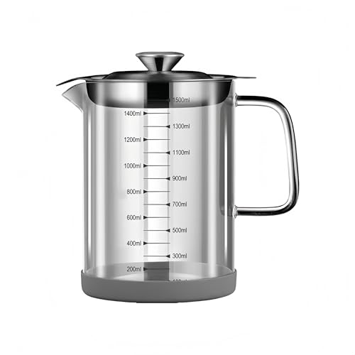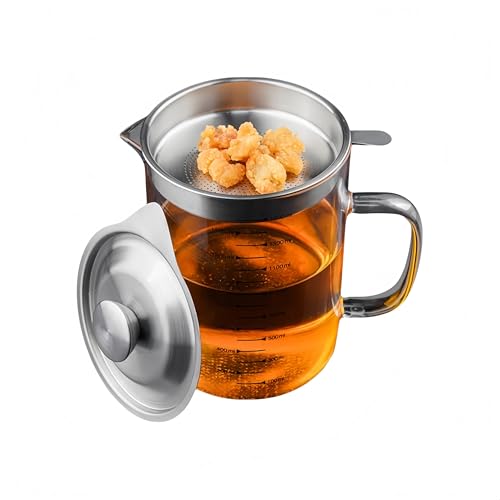 حاوية شحوم مع مصفاة من مار-وينسيد - برطمان شحم زجاجي سعة 1.5 لتر، وعاء زيت آمن للاستخدام في غسالة الأطباق، فلتر ومقبض من الفولاذ المقاوم للصدأ 304 (سلة شحوم للمطبخ لتخزين زيت الطبخ)
