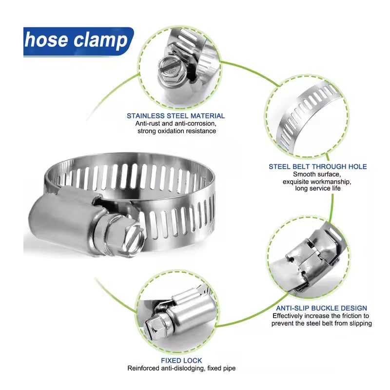 - ✅المشابك المعدنية مصنوعة من الستانلس ستيل لتوفير أقصى مقاومة للتآكل للملح ومعظم المواد الكيميائية، تتوافق مشابك خرطوم مع المعايير المحددة لن تقلق بعد الآن بشأن الصدأ والكسر.