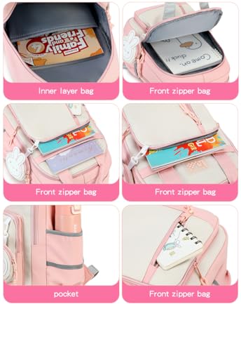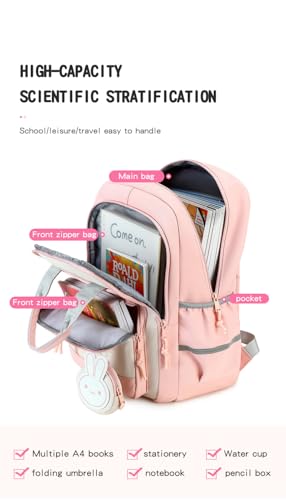 شنطة ظهر للبنات المدرسية، شنطة ظهر لطيفة للمدرسة الثانوية سعة 24 لتر للمراهقات والنساء والطلابات، شنطة لابتوب 15.6 انش للكلية والعمل والسفر والرحلات 42 × 16 × 36 سم - 599 - اسود