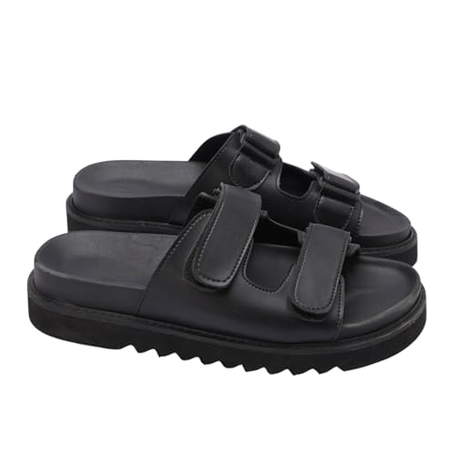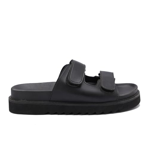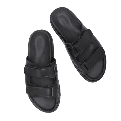 شبشب رجالي أنيق بشرائط مزدوجة لاصقة لون اسود- بتصميم مريح وعصري مصنوع من الجلد الطبيعي - نعل طبي مقاوم للانزاق