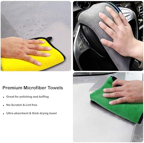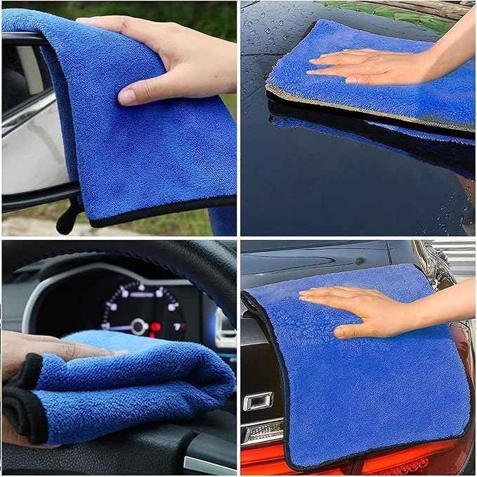- أقمشة تنظيف السيارة من المايكروفايبر من طبقتين، فوطة تجفيف سميكة ناعمة خالية من الوبر للعناية بالسيارات لتنظيف السيارة وتلميعها وغسلها وإزالة الغبار