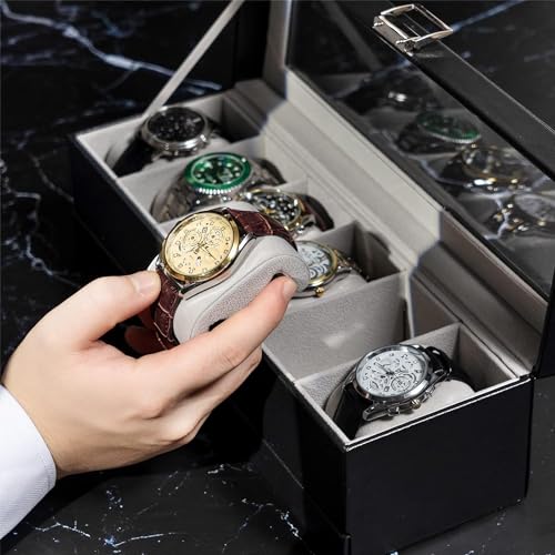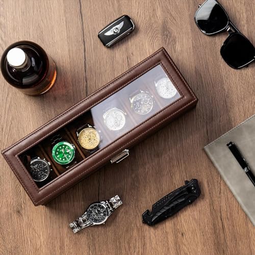 صندوق جلد حافظ ساعات 6 خانات، متعدد الألوان