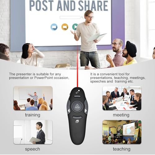 ريموت لاسلكي متعددة الوظائف مع مؤشر ليزر - اتصال 2.4GHz، تحكم في العروض التقديمية، مدى يصل إلى 30 متر
