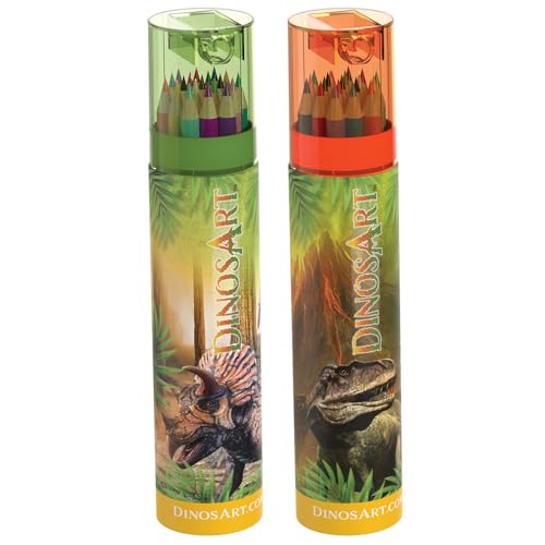 - تتضمن 18 قلم تلوين وقلم رصاص بطابع الديناصورات.