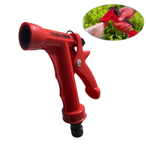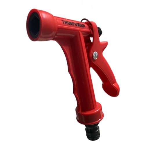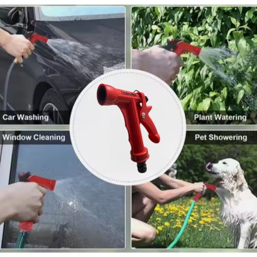 مسدس رش مياه متين مع وصلة لخرطوم الحديقة بتحكم خلفي، مناسب للخرطوم بقطر 15 ملم، لون أحمر