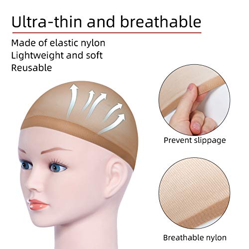 قبعات ارتداء الباروكة من يوراكت، 4 قطع من النايلون المرن رفيع للغاية، قبعة بلون البشرة للجنسين لتثبيت الباروكة في مكانها، مناسبة للرجال والنساء، شبكية وتسمح بتهوية الشعر، مثالية للشعر الطويل والقصير