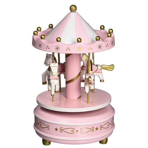 صندوق موسيقي دوار على شكل حصان خشبي لديكور المنزل