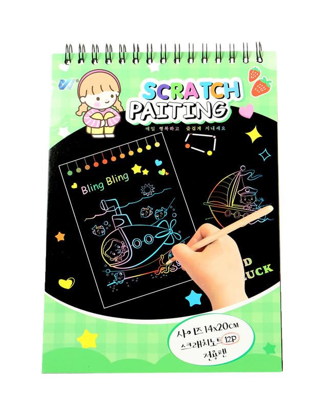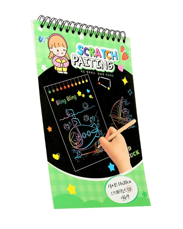 كشكول سكراتش سلك للرسم 1133002-1 مع قلم خشبي للأطفال - متعدد الألوان، مقاس 20 × 13 سم