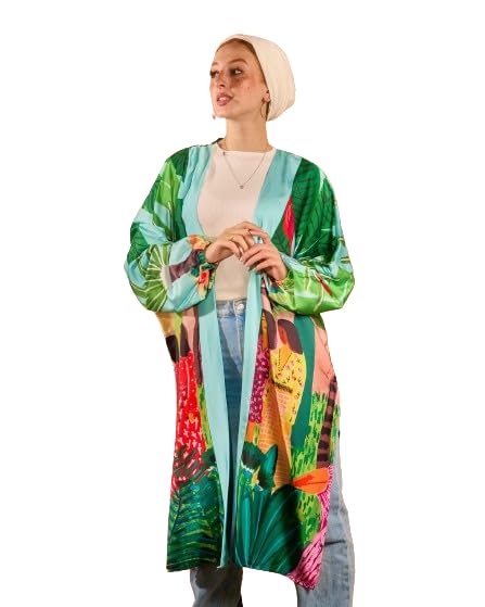 تاي شوب كيمونو ساتان مطبوع - GN00SA690300034 - مقاس واحد - اخضر واصفر واحمر