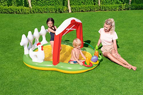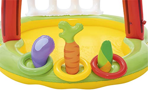 - المحتويات: حمام سباحة واحد وثلاث حلقات قابلة للنفخ وجزر قابل للنفخ وواحد باذنجاني وواحد قابل للنفخ وخمس كرات لعب ورقعة إصلاح ذاتية اللصق