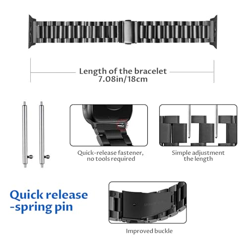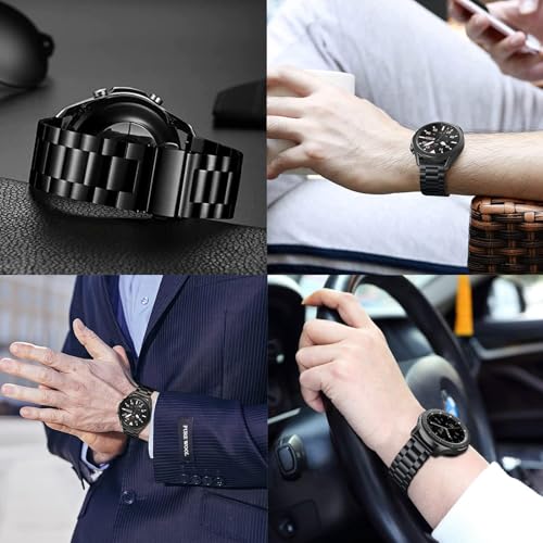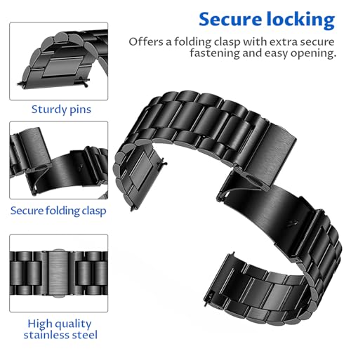 سوار ساعة من الستانلس ستيل مقاس 22 ملم ستايونج، معدني ممتاز، بديل للساعة الذكية للرجال والنساء (اسود)