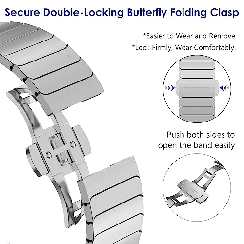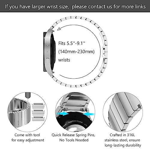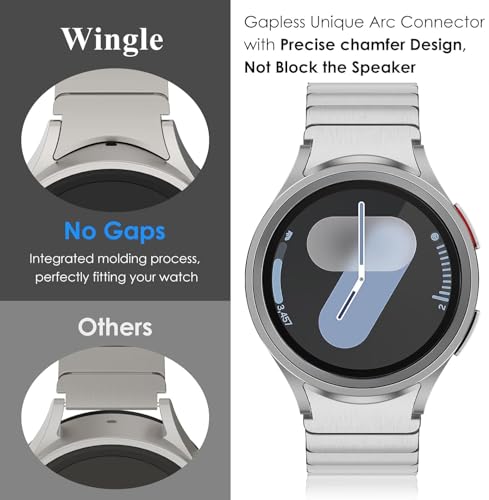 سوار ساعة سامسونج جالاكسي 5 برو مقاس 45 ملم 44 ملم 40 ملم من وينجلي، ساعة سامسونج جالاكسي 4 مقاس 44 ملم 40 ملم ساعة جالاكسي 4 مقاس 46 ملم 42 ملم، سوار معدني بدون فجوة من الستانلس ستيل، لون فضي، للرجال