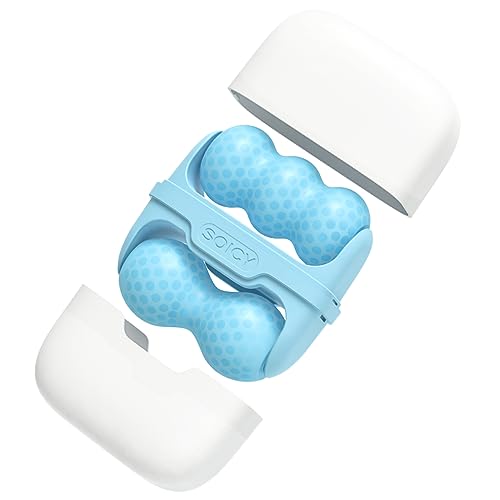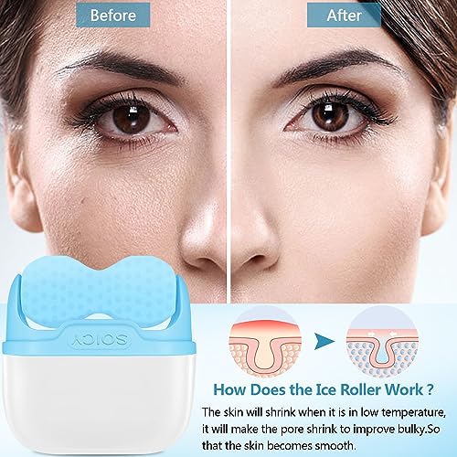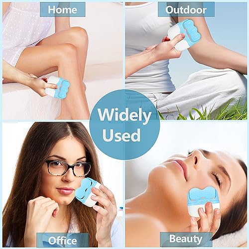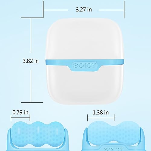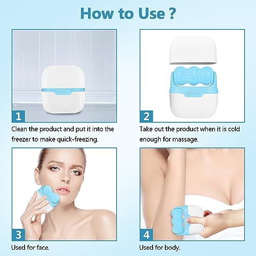 بكرة ثلج للوجه مزدوجة الاطراف مع شنطة سفر ادوات العناية ببشرة الوجه 2 في 1 مدلك للعلاج بالتبريد لتخفيف الام الصداع النصفي وانتفاخ العين والاحمرار والالم أزرق
