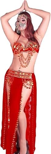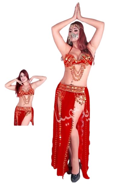بدله رقص - مقاس واحد - للحنه أو السهرات -لون أحمر - موديل رقم #: 542-221