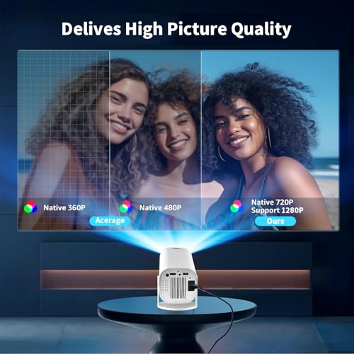 - 【درجة السطوع 8500 لومن | يدعم دقة 1080P و4K】يتميز جهاز البروجكتور الصغير بجودة صورة عالية بدقة 720P FHD الأصلية، ويسلط ضوءًا ساطعًا بقدرة 8500 لومن، ونسبة تباين مذهلة تبلغ 10000:1. حتى في البيئات المظلمة، يوفر بروجكتور الصغير هذا وضوحًا وسطوعًا عاليين وصور واضحة وحيوية، مما يجعل أفلامك تنبض بالحياة. مدعوم بقدرة فك تشفير شاملة، يدعم هذا الجهاز تشغيل مقاطع الفيديو بدقة 4K وبجودة 1080 بكسل بمعدل 60 إطارًا في الثانية يضمن هذا البروجكتور المدعوم بدقة 4K تشغيل سلس لجميع المحتوى المفضل لديك دون أي متاعب.