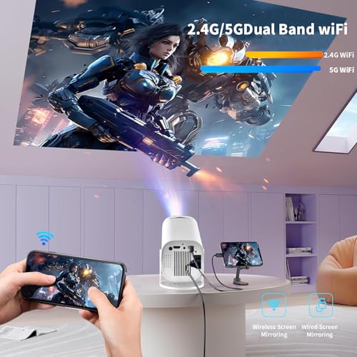 جهاز عرض صغير يدعم 3840 x 2160 من بوميفار ، محمول واي فاي 6 بلوتوث 5.0 اندرويد 11 1000 لومن افقي قابل للدوران 180 درجة متوافق مع الجوال أبيض