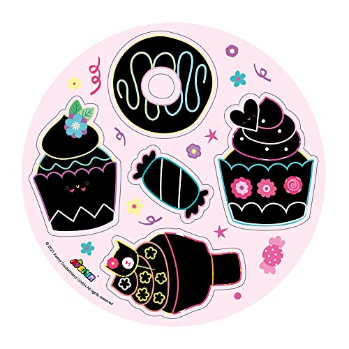 - مجموعة حلوى لذيذة: تحتوي كل عبوة على 14 قطعة حلوى مصنوعة من بطاقات الخدش، تتميز بحلوى لذيذة، مثل الكب كيك وكونات الآيس كريم والدوناتس، مما يضيف لمسة شهية إلى اللعبة.