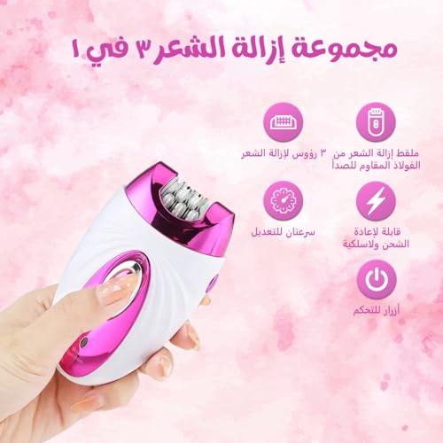 - نظام إزالة الشعر 3 في 1: تأتي ماكينة إزالة الشعر متعددة الاستخدامات هذه مع ثلاثة ملحقات مختلفة، مما يجعلها مثالية لإزالة الشعر من الساقين والذراعين والوجه ومناطق البيكيني الحساسة.