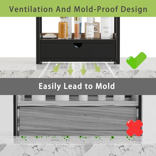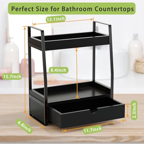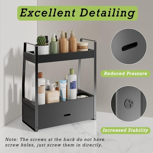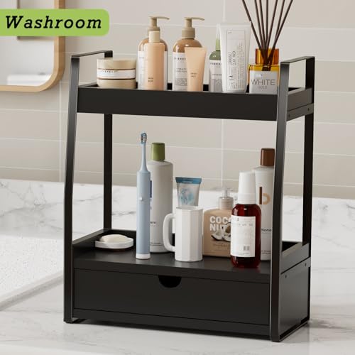 - 【منظم منضدة الحمام من طبقتين مع أدراج】يتميز منظم الحمام الخاص بنا بتصميم شبه منحرف ودرج فريد من نوعه، ومستويين تخزين واسعين، وأدراج تخزين إضافية لسطح الحمام لأغراضك الأكثر حميمية، مما يجعله مثاليًا لاحتياجاتك اليومية.